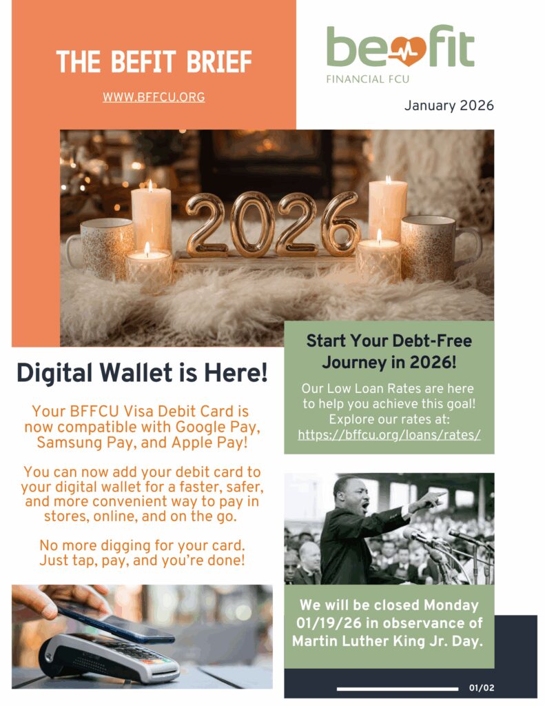 As 2026 begins, healthcare professionals and their families across Solano, Napa, Sonoma, Marin, Contra Costa, Alameda, Yolo, and Sacramento counties have the perfect opportunity to strengthen their financial habits. Choosing the right credit union can make a huge difference in achieving your goals. At Befit Financial Federal Credit Union (BFFCU), the combination of low loan […]
